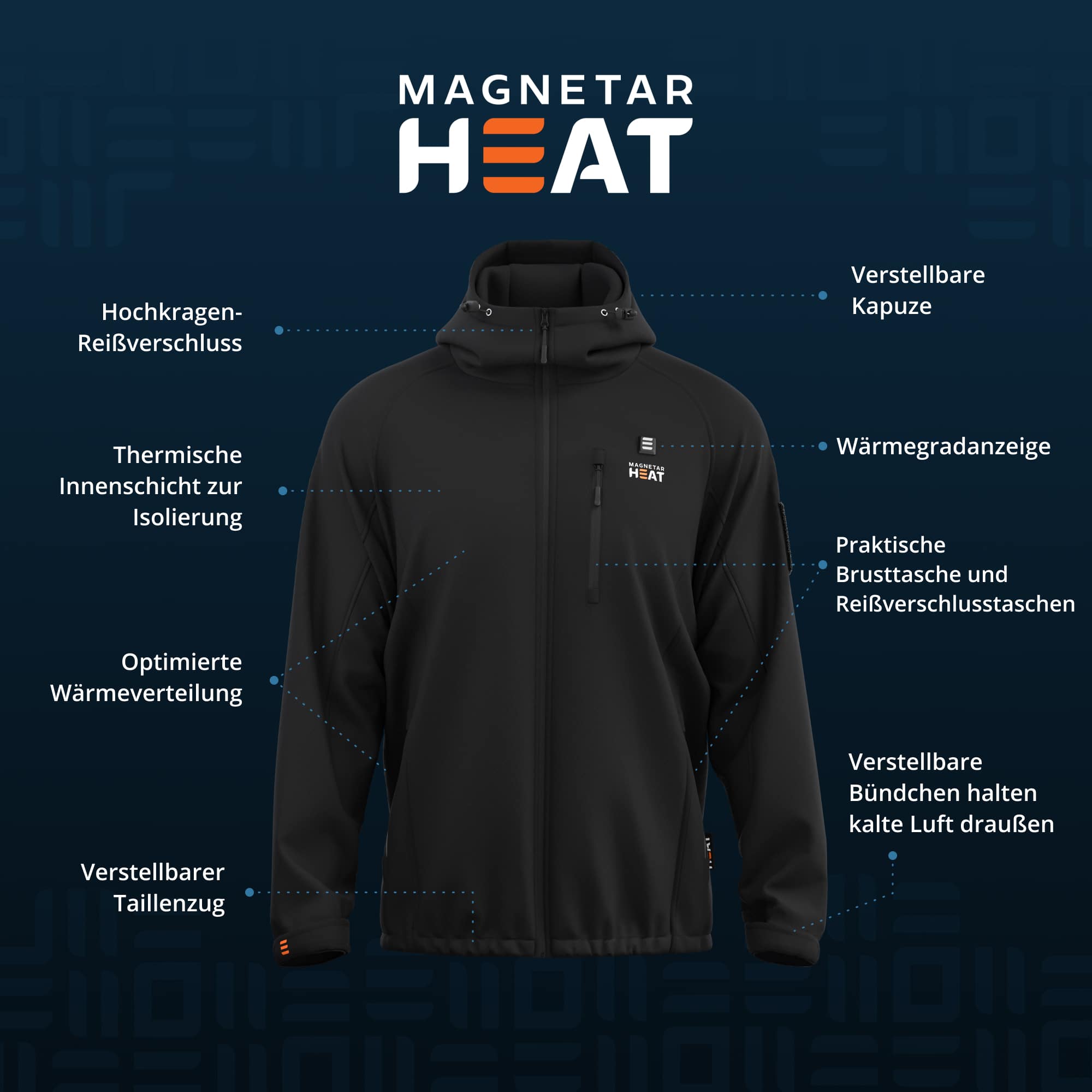 Kälte beeinflusst, wie du dich fühlst, dich bewegst und leistest. Mit der VULCAN™ beheizten Softshelljacke von Magnetar Heat® gehört das der Vergangenheit an. Anstatt einen ganzen Raum zu heizen oder viele Schichten zu tragen, wärmst du einfach dich selbst – effizient, komfortabel und clever.