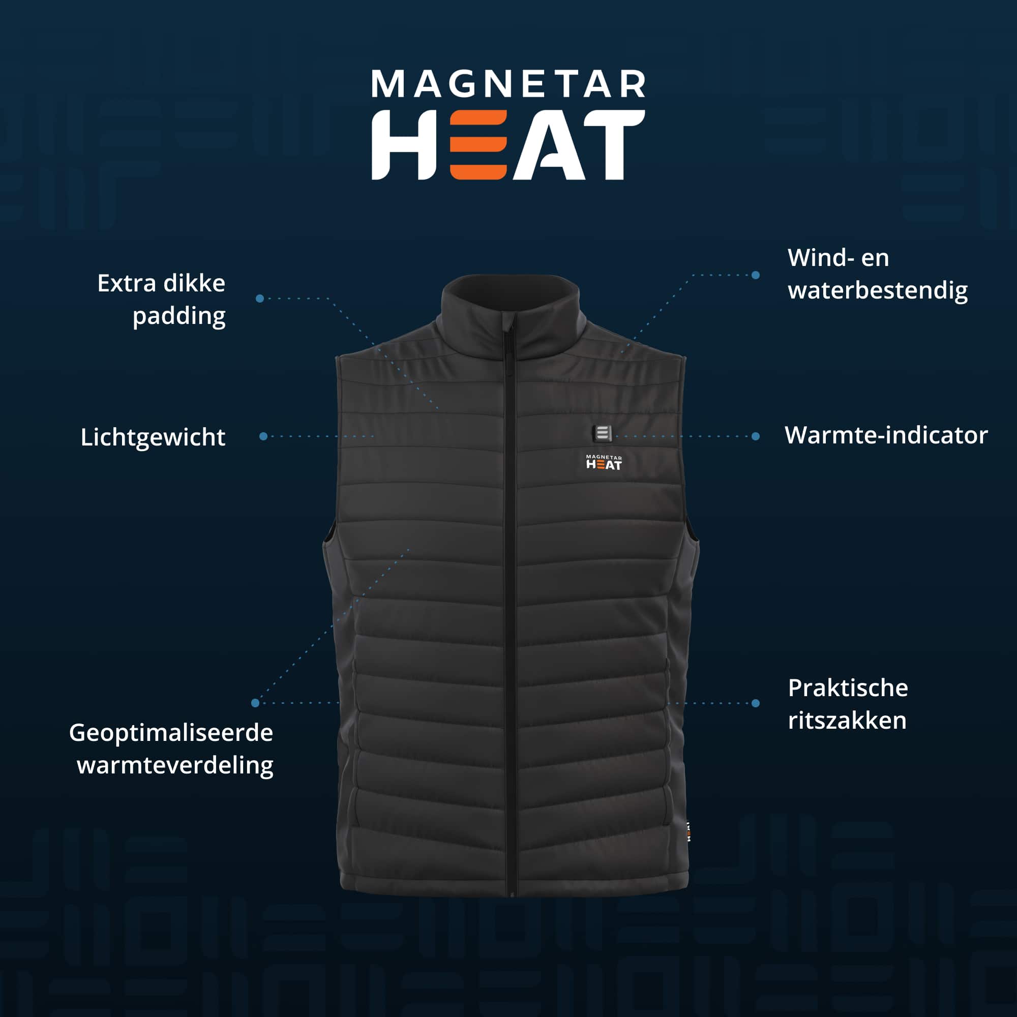 Kou beïnvloedt hoe je je voelt, beweegt en presteert. Met de LAVA™ verwarmde bodywarmer van Magnetar Heat® is dat verleden tijd. In plaats van dikke lagen te dragen of een hele ruimte te verwarmen, verwarm je gewoon jezelf – efficiënt, comfortabel en slim.