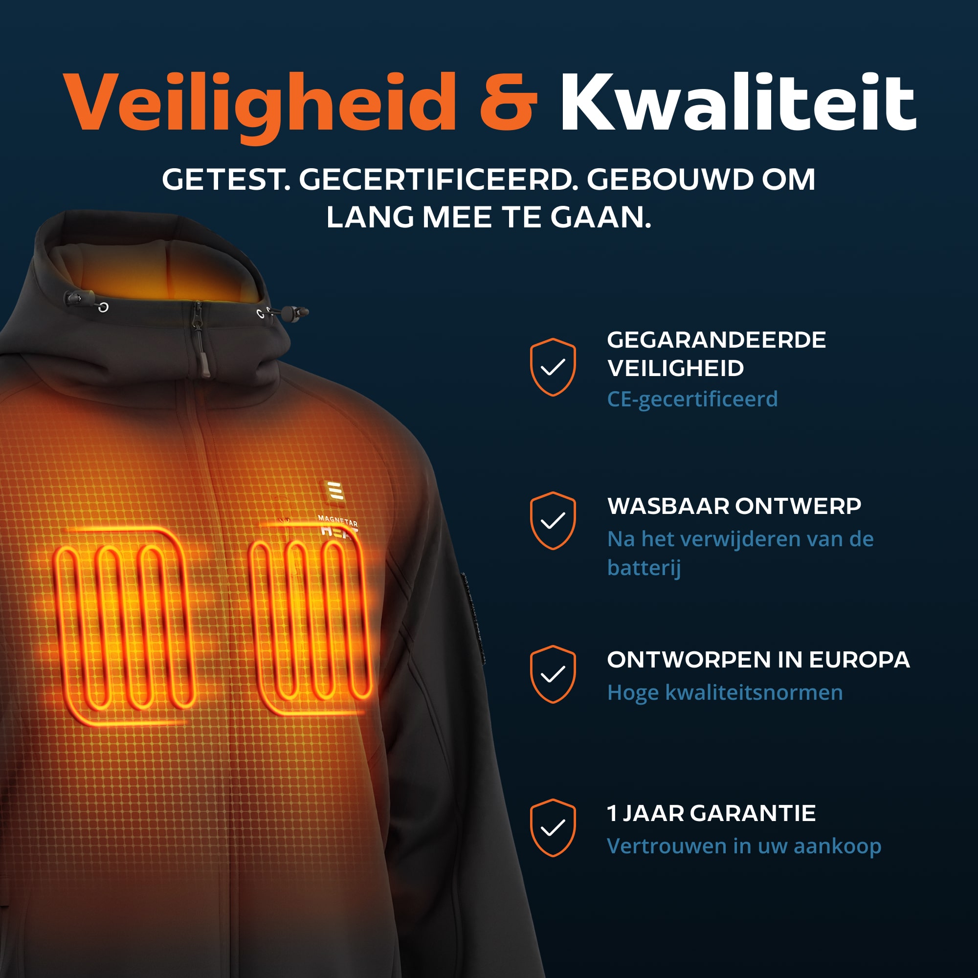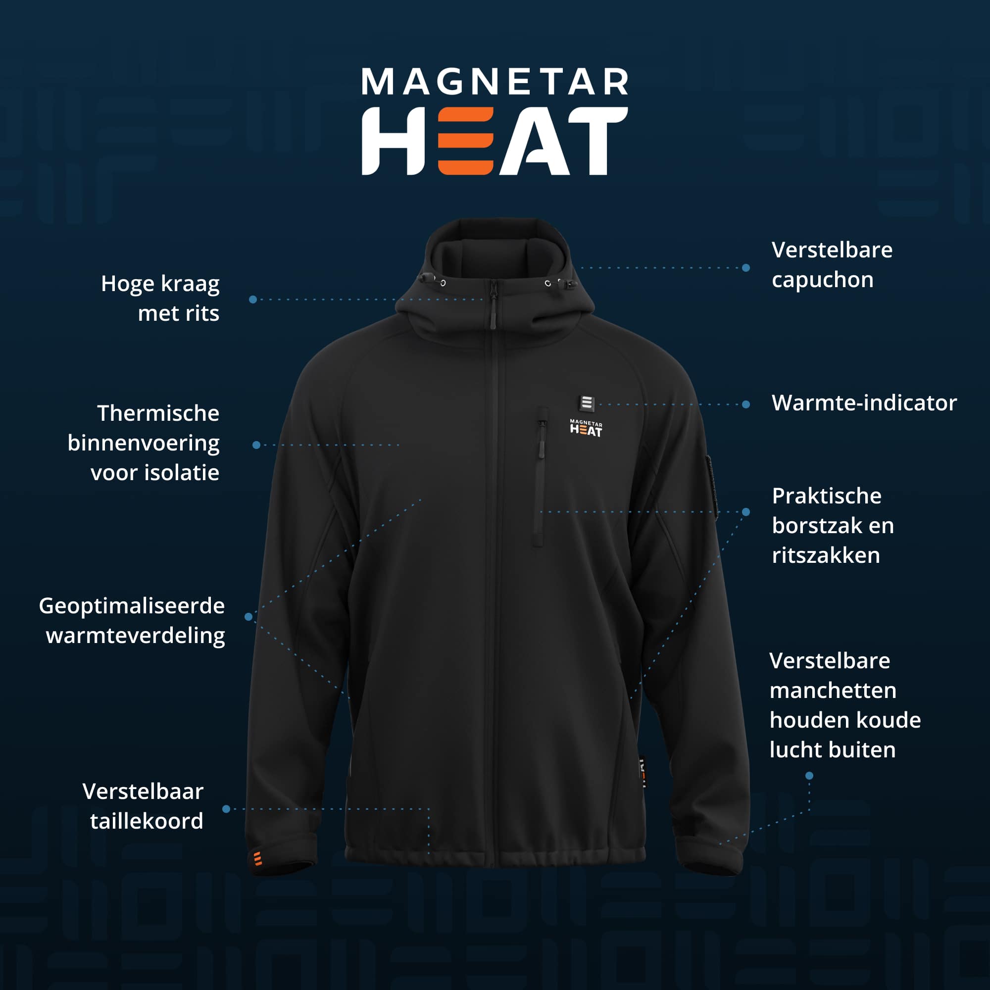 Altijd warm, waar je ook bent. De VULCAN™ verwarmde softshell jas van Magnetar Heat® combineert krachtige warmte met water- en winddichte bescherming. Perfect voor werk, wandelen of wintersport – warmte en comfort in elk seizoen.Productinformatie